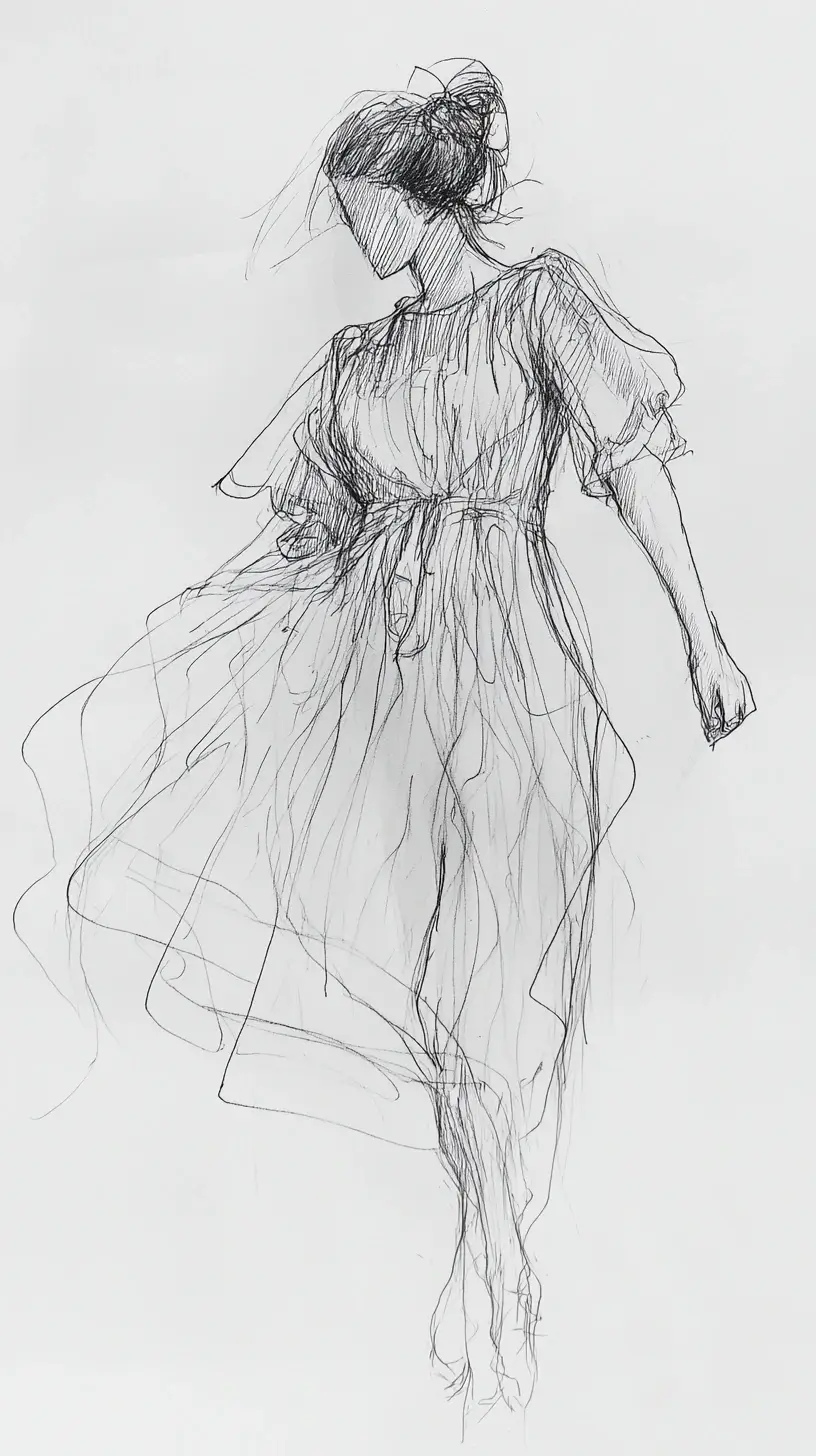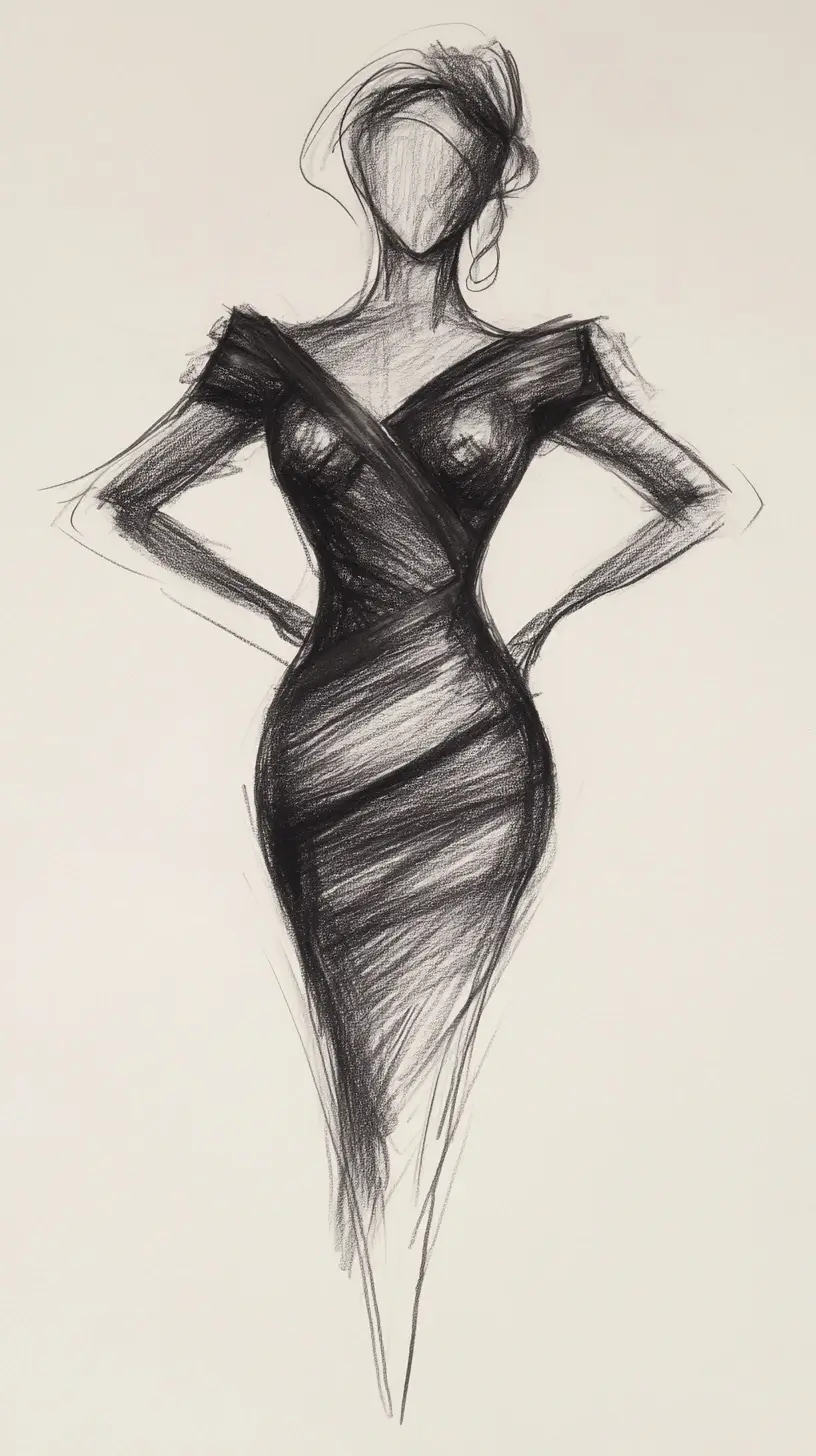 When I start to sketch clothing, my first step involves breaking down complex garments into simpler geometric shapes. It’s like a puzzle – every shirt or skirt begins as a combination of rectangles, circles, or triangles. For example, a sleeve can be broken down into a series of cylinders. Understanding these fundamental shapes sets the foundation for more intricate details later on. Also, they give you a first feeling for the symphony in your drawing.