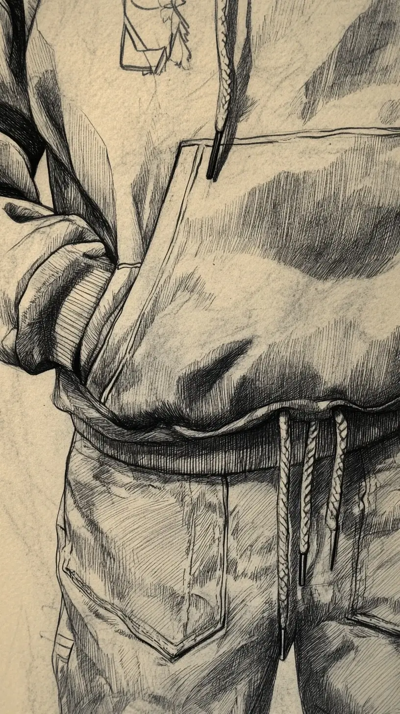 In my experience, the key to effective fabric texturing is understanding how different materials behave. Silk, for example, has a smooth texture and reflects light differently than wool. When I’m sketching, I use a variety of pencil strokes to mimic these textures. Long, fluid lines work well for silk, while short, directional strokes can represent wool or denim. For added realism, I study how light and shadow play on the fabric’s surface, which I can find in some reference pictures on the internet or in pictures of my clothes in the sun. It’s also helpful when drawing accessories to consider the material they’re made from and reflect that in the texture and drape of the fabric around them.