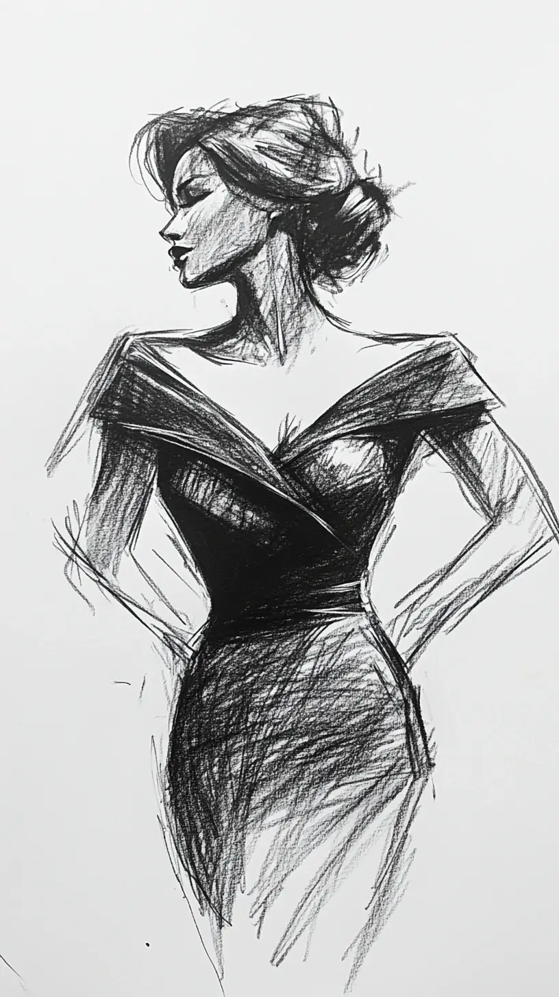 The challenge I enjoy often is drawing formal clothes, where I often depict more delicate and intricate fabrics with careful attention to detail. With suits and gowns, I pay close attention to the way fabric hangs and pulls – lapels on a suit jacket require sharp, angular edges to convey a stiff fabric, while a flowing evening gown involves long, sweeping curves. It’s also important to represent the sheen of materials such as silk or satin, achieved by varying the intensity of shading. So every picture you see has different aspects of details, you can consider when you choose your clothes drawing reference.